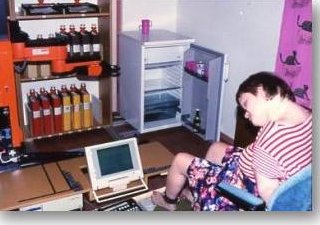 パソコン操作、書架や冷蔵庫の出し入れなど全て足だけで行う スウェーデン国立ハンディキャップ研究所職員 |