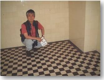 当時そのままのガス室 一酸化炭素ガスが噴出した鉄パイプは撤去されている 大熊の目に涙 |