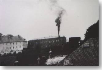 遺体を焼き続け 昼夜にわたって立ち上る黒煙 (記念館展示写真から転写) |